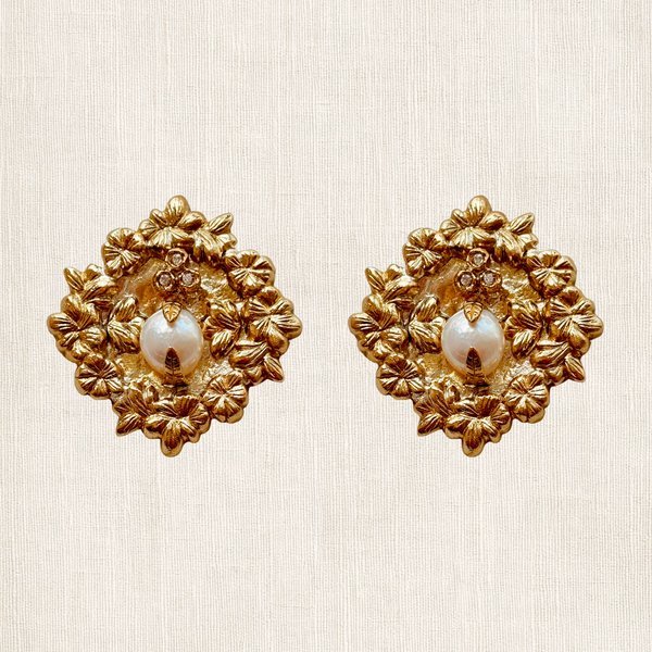 Edição especial, feita à mão com a delicadeza que caracteriza cada criação Salomé Faria Jewelry. Os brincos Eli incorporam pérolas naturais, abraçadas por folhas de oliveira, elegantes apontamentos de brilho e românticos elementos florais. Uma peça pensada para transmitir leveza e sofisticação, celebrando a feminilidade em toda a sua harmonia.