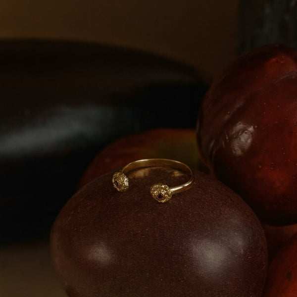 Anel ajustável em latão com banho de ouro plaqueado 24K e granadas (cor bordô)